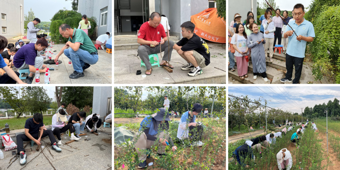 8月26日至9月1日,嫁接实训阶段分步进行,同学们认真细致地按照嫁接刀开刃、接穗准备和削芽、开砧及绑缚等步骤进行了嫁接前的练习和以梨和柑橘为材料进行田间嫁接实操以提升嫁接效率和质量。从最开始的分步练习到苗圃地实战,张青林、解凯东和郭大勇3位老师言传身教,面对面、手把手指导;通过不断练习,结合不定时现场考核,同学们的嫁接技术水平得以迅速提升,同时也锤炼了吃苦耐劳精神。整个实习过程气氛高涨,同学们顶高温、战酷暑、无畏风吹雨打、不惧虫鸣日晒,师生们秉持着“勤读力耕,立己达人”的校训精神,尽管汗流浃背,但阵阵欢声笑语充分展现了华农果树人坚韧好学的优良品质。