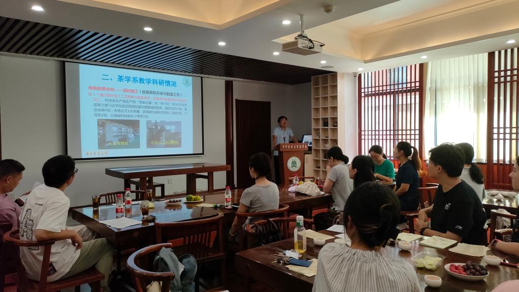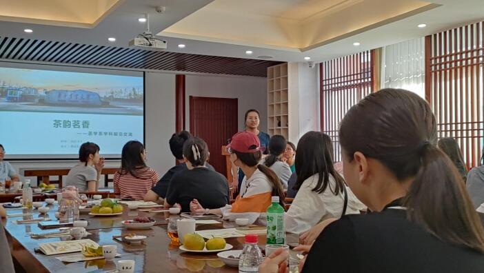 活动第一项,郭飞老师分别从茶学系基本情况、茶学系教学科研情况、茶学系研究方向和茶学系社会服务情况等四个方面为同学们介绍了茶学系基本概况,让同学们对这个新加入的大家庭有了进一步的了解。同时,基于茶学系与公司其他系科研进展的比较,对新生提出了自己的期许。