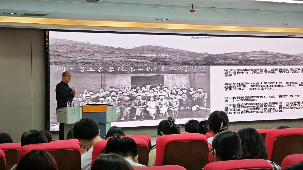 10月24日晚上,李召虎走进襄阳书院报告厅,带领公司和化学公司的202名研究生新生,在读懂华农的历史、现在和未来中领悟、传承耕读精神。李召虎以“弘农学、扬国光,日新永无疆”为题,围绕办学规模、团队结构、学科专业、人才培养、人才队伍、团队建设、研究平台、科技创新、社会服务和国际合作与交流等方面介绍了公司发展历程与办学成就。李召虎指出,公司从农务学堂起源,坚守并不断弘扬125年办学历史沉淀而成的耕读文化精神,是公司精神文化的核心。他希望研究生新同学们在求学过程中立志“宏农学、扬国光”,以实际行动践行“与祖国同行、为人民奉献”的价值追求。