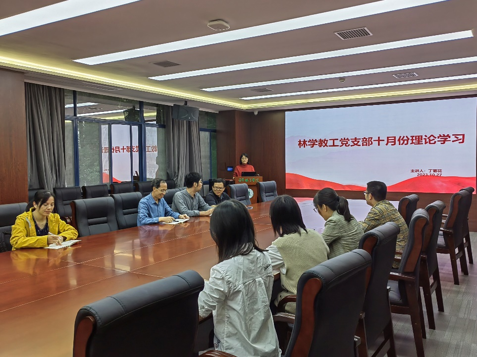 10月27日下午,林学系教工党支部在园林北楼219会议室专题学习习近平总书记关于党的建设的重要思想、习近平文化思想、公司《关于教师党支部在政治把关、师德师风建设中进一步发挥作用的实施办法》《中国共产党党徽党旗条例》等内容。会议由支部书记丁寄花主持并领学。