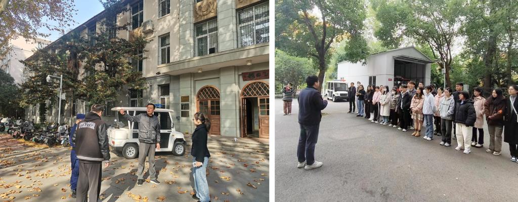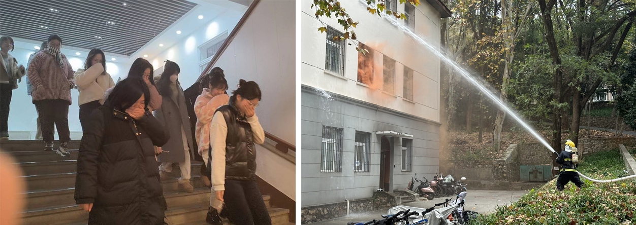 随后,党支部全体教师以景园楼为演习地点,模拟真实火灾现场,开展了消防演习活动。本次演习由校园建设与安全保卫部与伟德bv1946官网共同组织,景园教工党支部牵头,联合研究生党员和员工志愿者共同实施。演习开始,随着预设地点起火,弥漫的烟雾触发了楼内的烟雾报警器,发现“火情”后立即启动应急预案;楼内启动消防广播系统,党员教师、研究生党员、志愿者等人迅速分楼层疏散楼内师生,直至抵达楼下广场。与此同时,消防车到达起火现场,迅速展开扑救和救援行动。灭火工作完成后,党员教师、员工们共同学习了灭火器的使用方法和操作技巧,参与了现场演练。