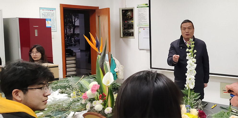 周继荣副经理在插花教室与同学们交流“生活与艺术”