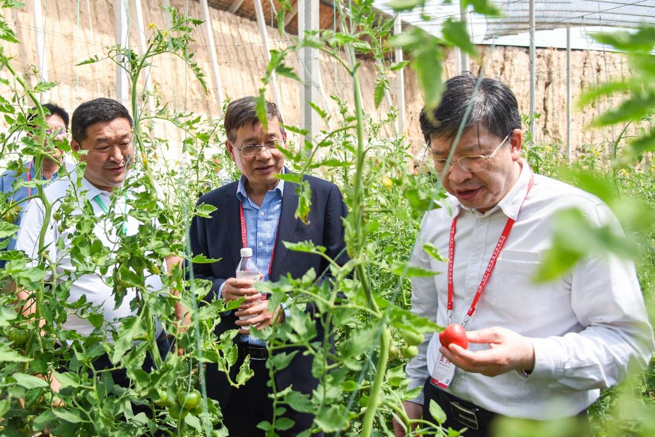 邓秀新院士(右)、叶志彪教授(右2)在番茄基地调研