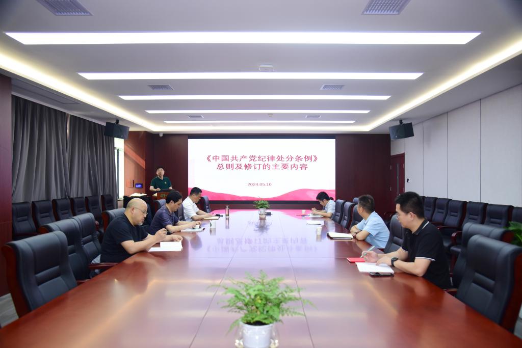5月10日下午,公司领导班子成员与行政教工党支部在园林北楼219会议室开展《条例》专题学习。龙健飞讲授专题党课,逐章逐条学习《条例》修订的相关重点内容,解读其核心内容和精神实质。他提到,修订《条例》与2018年版本相比,新增的内容更加具体详实,体现了我党下大力气建制度、立规矩、抓落实、重执行的鲜明导向,是对全党一次生动的纪律教育。