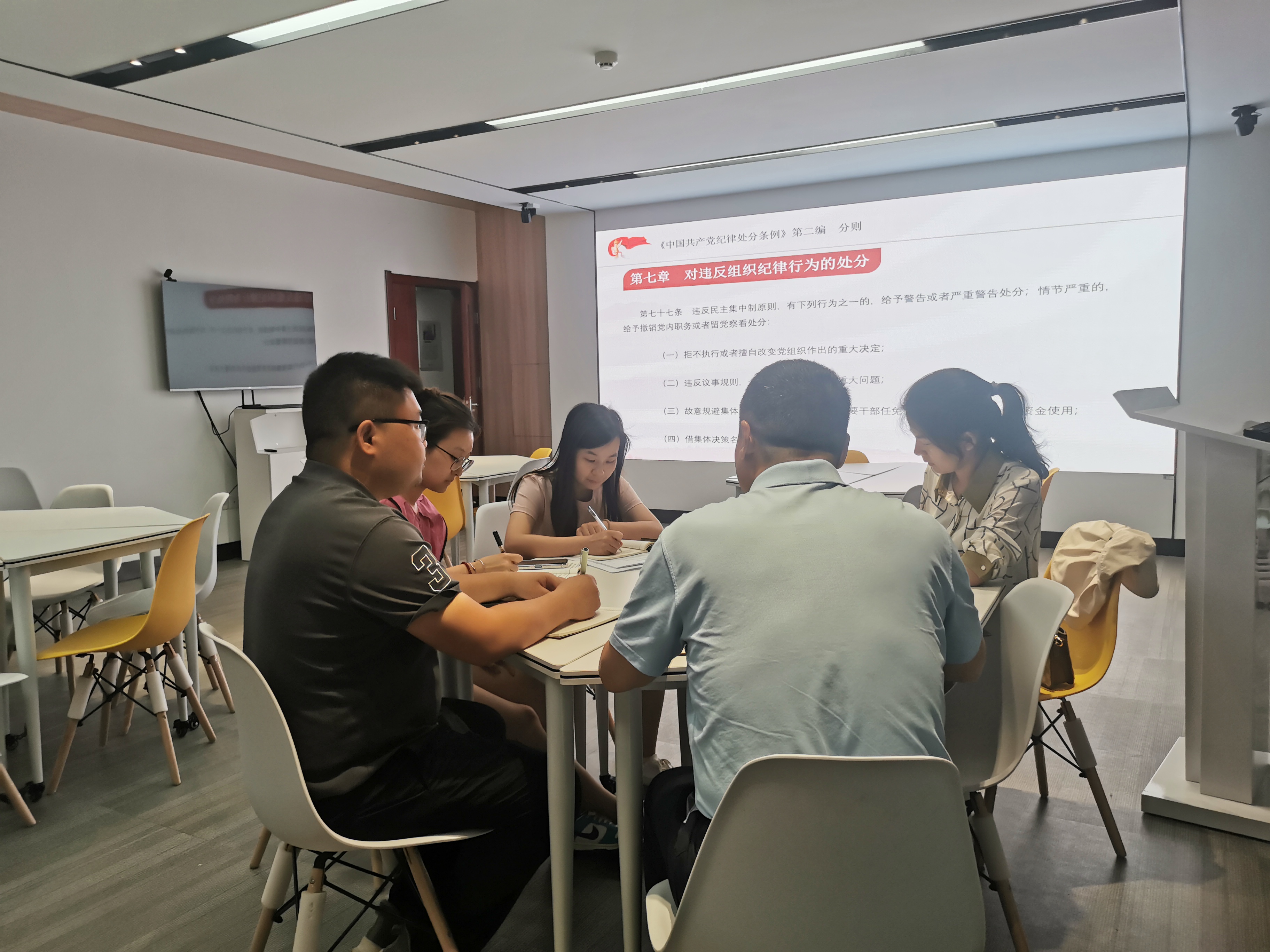周继荣领学《中国共产党纪律处分条例》第二编部分内容和《中国共产党党员网络行为规定》。他要求全体党员同志要认真观照这几个文件的时代背景和社会基础,深刻领会党规党纪的历史、理论和实践逻辑,做到学纪、知纪、明纪、守纪。
