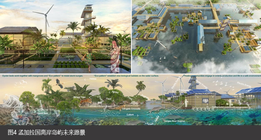 孟加拉国因水而生因水而荣。恒河、布拉马普特拉河和湄公河不仅是孟加拉国重要的水资源,也深刻影响了该国的自然和文化环境。团队重视当地居民的参与,综合考虑生物文化多样性的保护,强调河流、居民与土地之间的互动关系,在自然与人类共同繁荣的过程中,构建了2120年孟加拉国的愿景。