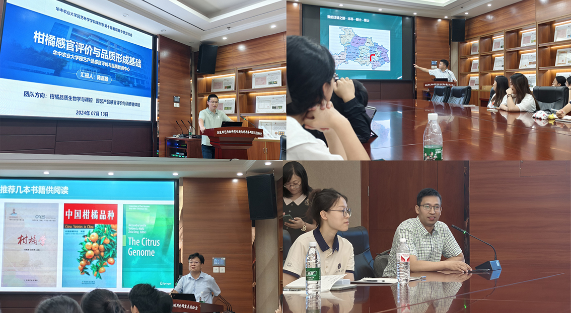 12日和13日两天,柑橘资源与种质创新团队、园艺作物繁殖特性与分子设计团队、柑橘细胞工程与遗传改良团队、园艺产品采后生物学评价与保鲜技术团队、园艺产品感官与消费者体验团队、柿种质资源与新品种选育团队、果树栽培团队等七个学科团队(单元)依次与学员们做了深入交流。柴利军教授介绍了柑橘种质资源发掘及利用、种质创新与遗传改良等方面的最新研究进展;徐强教授和康春颖教授就“好吃”“有益成分”“种植难度”3个方面,讲述团队在基因组数据及分子育种等的科研进展;吴巨勋副教授和伍小萌副教授以二倍体雄性不育胞质体为题,介绍了国际首例柑橘细胞工程直接培育的品种的育种过程;程运江经理和曾云流副教授谈到所属专业团队以柑橘、猕猴桃为对象,通过品质数据库建设、即食控熟技术等研究,采后保鲜和感官体验团队发展势头越来越好;王鹏蔚教授从细胞器功能与果实品质角度出发,引导学员们理解科学的本质就是观察、总结规律和解释原因,最后付诸于技术和产业实践的过程;陈嘉景副教授从园艺产品感官评价的重要性出发,讲述了团队的感官评价的研究进展和实验条件;张青林副教授以柿种质资源为题,讲述了团队在砧穗遗传改良方面的进展;刘继红教授全面介绍了果树栽培团队的组建背景和近年来的最新工作进展及亮点成果。学员们从一场场学术报告中仿佛找到了自己的兴趣点,积极与老师们互动交流,探讨研究背后的生物学意义和产业意义。除此之外,12日和13日每晚都举行了一场学术沙龙,让同学们能够充分的与专业内优秀的年轻科研工作者交流,为同学们生活和学习的各方面答疑解惑。