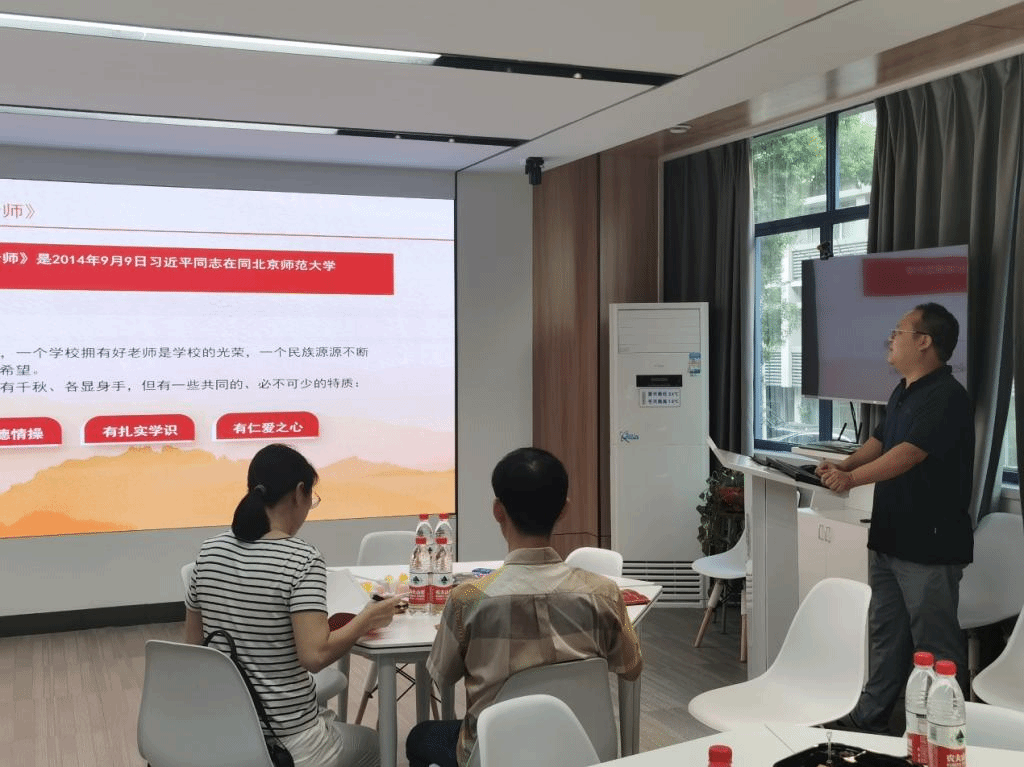 与会成员还共同学习了《习近平关于人才工作论述摘编》和《中共中央国务院关于弘扬教育家精神加强新时代高素质专业化教师队伍建设的意见》。最后大家共同观看了《国家记忆-教育家精神》。