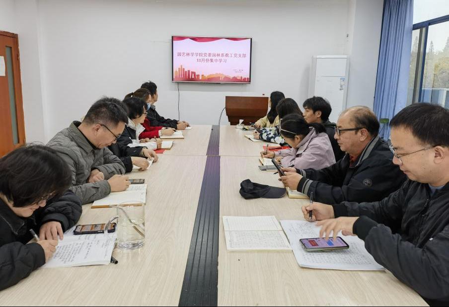 11月18日下午,园林系教工党支部在园林北楼415会议室开展十一月主题党日活动。本次活动由曾芝琳同志主持。学系非党员教师也积极参与了此次学习活动。
