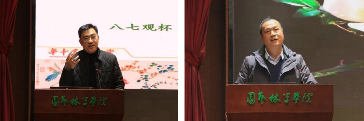 在热烈的掌声中,吴全斌会长和周继荣副经理分别致辞。吴会长带领大家回顾了“凭谁花解语”竞赛的历史,他感慨于同学们的出色表现,并对同学们表示了殷切的关心和对未来的期待。周经理真诚地赞誉了同学的积极参与、公司的鼎力支持、老师的辛勤准备,不仅期望同学们能坚持传承中华花文化,更希望大家通过参加此类活动,将传统文化和科学研究结合,进一步提升自我的科学素养与沟通能力。