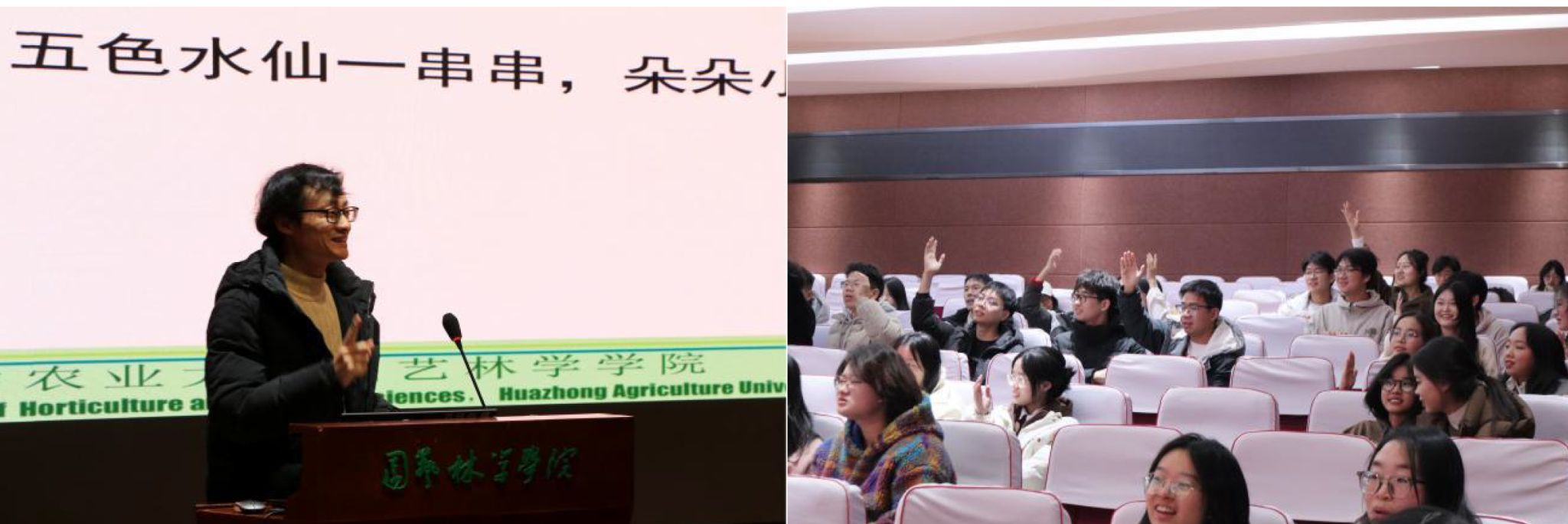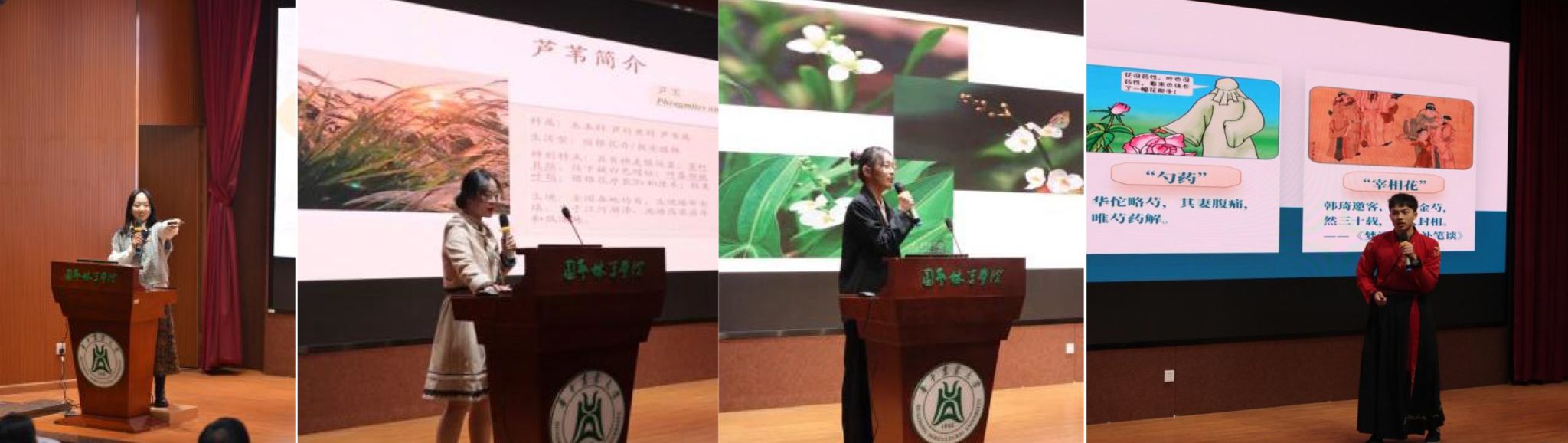 竞赛正式开始,20位选手按照抽签顺序,依次上台展示3分钟的演讲,他们精神饱满,声情并茂,用专业的知识和充沛的情感将师生们带入了中华花文化的世界。选手们分别选择了秋海棠、山丹、石蒜、玉簪、芍药、水仙、萱草等18种具有中华特色的花卉,从花卉的基本信息开始,逐渐深入至其背后的历史故事和蕴含的文化情怀等,向师生们诠释了“花中中华美”。