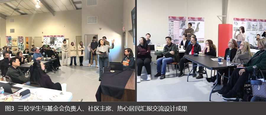 2月24日,Anne & Gene Worrell基金会负责人、社区主席以及热心居民现场聆听最终成果汇报。6个跨国设计工作小组成员逐一对各区域问题进行阐述,提出激活当地经济、改善生态环境、处理种族问题、保护历史文化等方面的解决策略和概念布局。公司邵继中教授、张炜副教授与章莉副教授对汇报成果进行了点评和总结。Anne & Gene Worrell基金会代表高度评价方案的可实施性,并就后续深化方向提出建议。