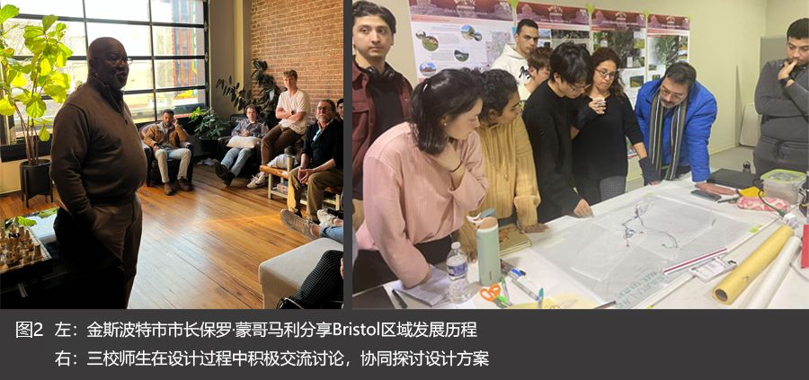 工作坊采用“跨国混编小组”模式,将三校员工分为6个设计团队。在基金会工作人员引导下,师生对布里斯托尔中心区六大重点地块展开实地考察,深入了解场地历史脉络与现状矛盾。以Sugar Hollow流域河流污染治理、社区公共服务设施短缺等核心问题为切入点,各小组通过头脑风暴与多轮方案推演,提出涵盖生态修复、文化传承、产业激活的综合性更新策略。