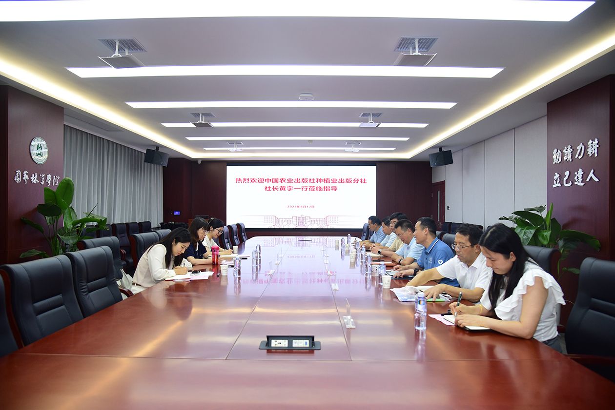 6月15日下午,中国农业出版社种植业出版分社社长黄宇一行来院调研,公司经理程运江、副经理周继荣等热情接待了黄宇一行并举行座谈交流,公司各系主任及教师代表一同参加,座谈会由周继荣主持。