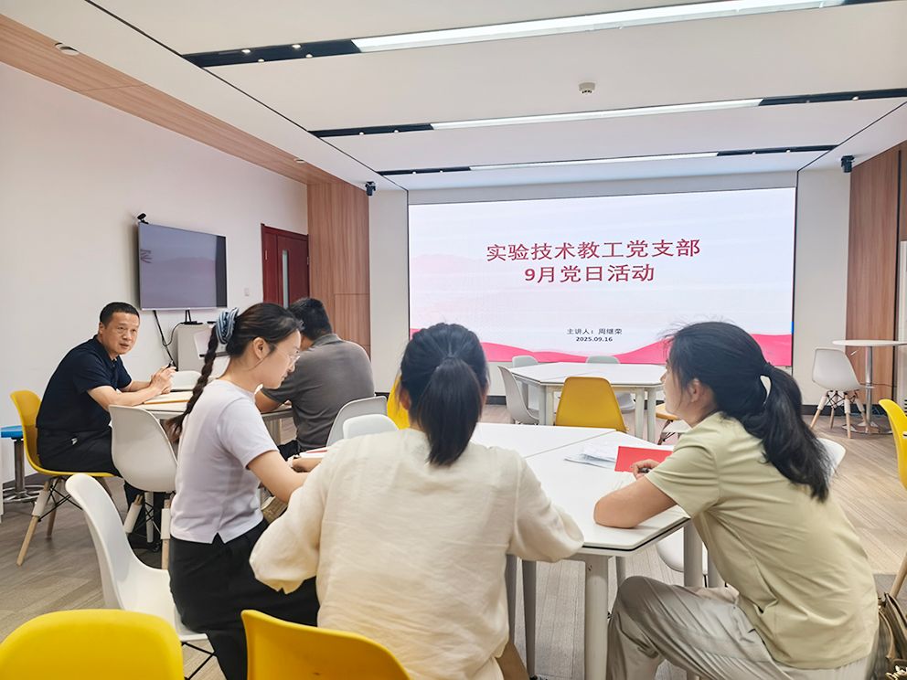 9月16日上午,实验技术教工党支部在园林北楼221虚拟仿真实验室开展9月主题党日活动,会议由党支部书记周继荣主持。