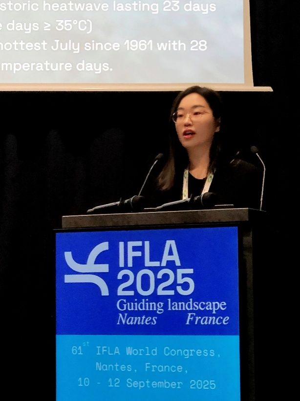 2025年9月10-12日,第61届国际风景园林师联合会(International Federation of Landscape Architects, 简称IFLA)世界大会在法国南特召开。本届大会的主题为“引导性景观(Guiding Landscapes)”,聚焦新型韧性城市社区的规划、设计、管理与更新,城市雨洪管理、生物多样性发展与生态系统服务改善等核心议题。大会邀请全球风景园林行业从业者、政策制定者及专家学者等多方人员共同参与,就“引导性景观“的行业实践及相关研究前沿开展积极交流与探讨。