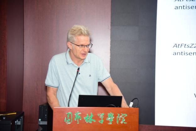 在学术报告环节,7位中外青年学者依次分享了最新研究成果,内容涵盖植物分子调控、森林资源可持续利用、园艺作物遗传改良等关键领域,展现了学科交叉融合的创新魅力。Robert M. Larkin博士聚焦“拟南芥与番茄叶⽚、花和果实中质体增殖机制”,通过解析质体发育动态,为作物产量与品质调控提供了新的分子靶点。张月莹博士以“RNA结构:隐藏的调控开关”为题,深入阐述RNA二级结构在基因表达调控中的作用机制,为植物分子育种开辟了新思路。张博博士围绕“从树木⽣物学到木材种质创新”,提出基于温度调控树木生长的创新策略,为未来森林资源高效利用与碳中和目标实现提供了理论支撑。北川宗典博士探讨“同源框mRNA的非细胞自主性特性”,其研究成果为园艺作物株型改良与抗逆育种提供了潜在解决方案。常慢慢博士针对“γ-谷氨酰基转肽酶参与茶树茶氨酸代谢机制”展开研究,揭示了茶叶特征性成分合成的分子调控网络,为高品质茶品种培育奠定基础。李昂博士分享了“特殊温度介导猕猴桃采后淀粉降解的分子机理”,通过解析温度信号通路与淀粉代谢的关联,为延长果实保鲜期提供了新方法。李亚军博士聚焦“一个从头起源基因驱动蔷薇属花香多样性”的研究,通过基因组、转录组等多维度研究,揭示玫瑰特有基因 SCREP 的从头起源机制,发现其借助MITE转座元件调控丁子香酚合成。论坛座谈交流环节,专家和学者们围绕研究方向、合作模式及人才发展等议题展开热烈讨论,现场气氛活跃。