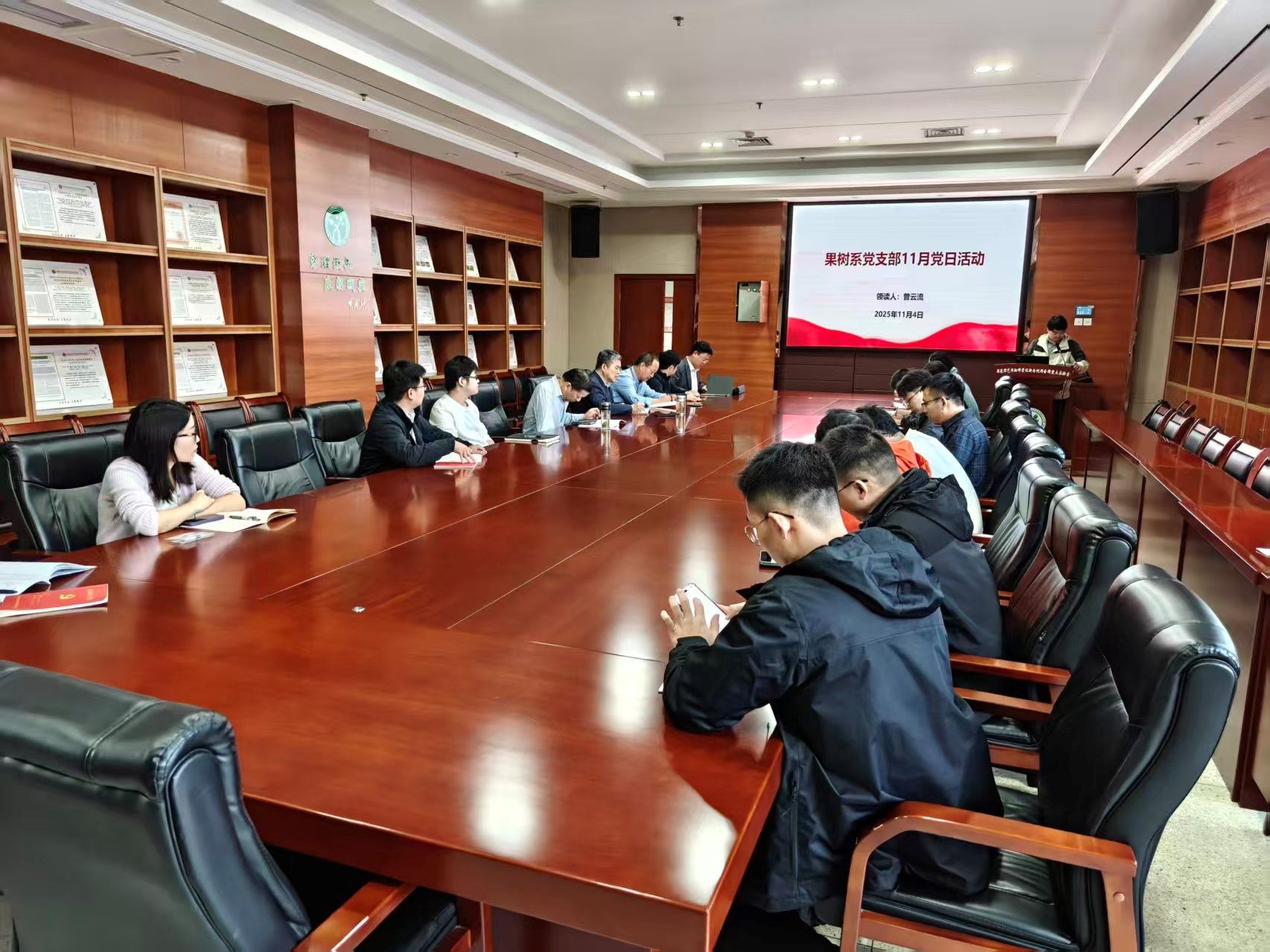 11月4日下午,果树系教工党支部在园林南楼 206 会议室开展主题党日活动。本次会议由党支部书记柴利军主持,支部党员及学系党外教师共同参与,围绕四项核心内容开展学习研讨:一是深入学习领会党的二十届四中全会精神;二是学习《习近平谈治国理政》第五卷内容;三是专题学习研讨习近平总书记给中国农业大学的回信精神;四是围绕公司第二次党员集中大课内容交流心得,切实推动理论学习入脑入心。