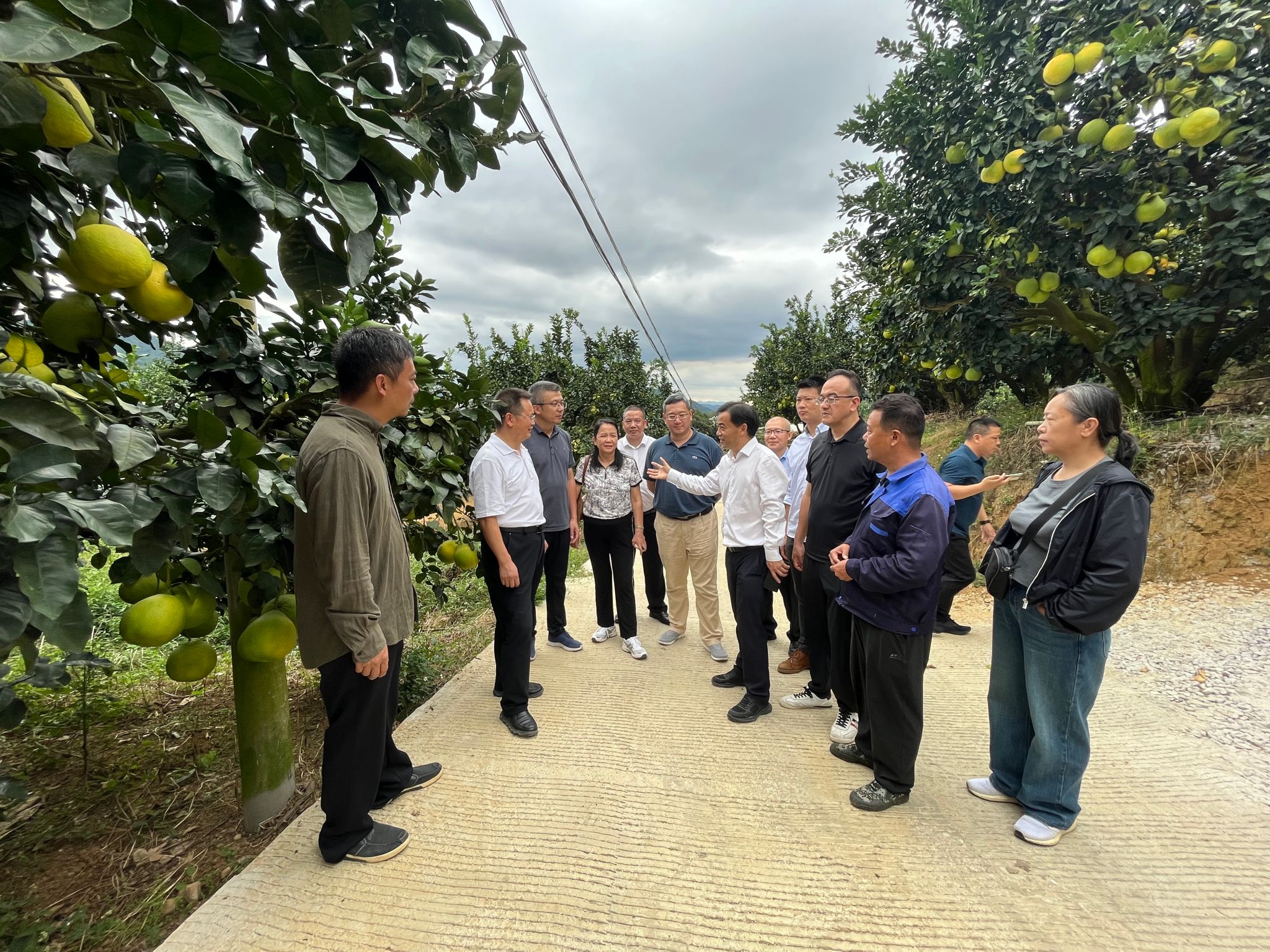 一行人到梅县区雁洋镇南福金柚种植基地、仿桂园家庭农场实地调研了金柚种植生产情况,与梅县区农业科学研究所所长钟永辉、南福村党总支部书记黄开志、柚农黄宏等曾于11月7日向习近平总书记现场汇报过的同志进行了充分交流。