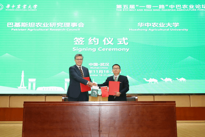 开幕式上,bv伟德国际1946分别与巴基斯坦农业研究理事会、费萨拉巴德政府公司大学签署合作协议。随后,"武汉市(中国-巴基斯坦)园艺作物种质创新与利用‘一带一路’联合实验室"正式揭牌。