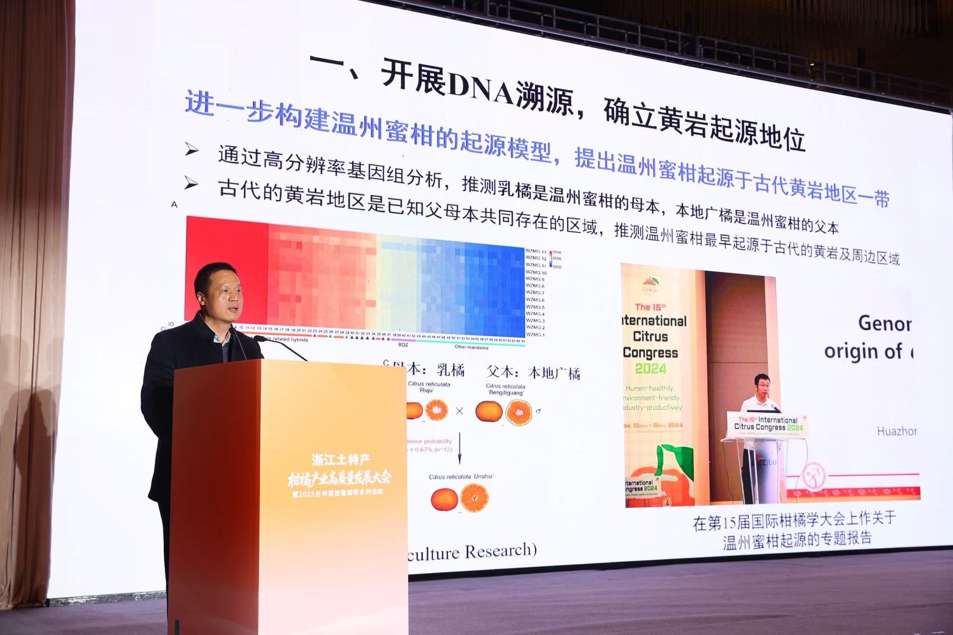 周继荣在大会发言中表示,bv伟德国际1946作为黄岩柑橘产业科技协同创新战略合作单位,2022年以来,在地方政府部门和科研机构大力支持下,联合实施了“黄岩蜜橘DNA溯源研究”“细胞工程技术改良黄岩蜜橘”及“分子设计育种改良黄岩蜜橘”三大项目,取得了三个方面的成果:一是开展DNA溯源,为“黄岩蜜橘是世界蜜橘之源”提供了关键科学依据;二是创制新种质,培育新品种,发掘及创制多倍体种质800余份,成功培育出综合品质优良的“华岩蜜橘1号”;三是开启AI育种,提升育种质效,填补了果树表型机器人领域的技术空白。公司将进一步深化与黄岩的协同攻关,坚持不懈地进行科技创新,为浙江乃至全国柑橘产业的转型升级与高质量发展注入更强劲的动能。
