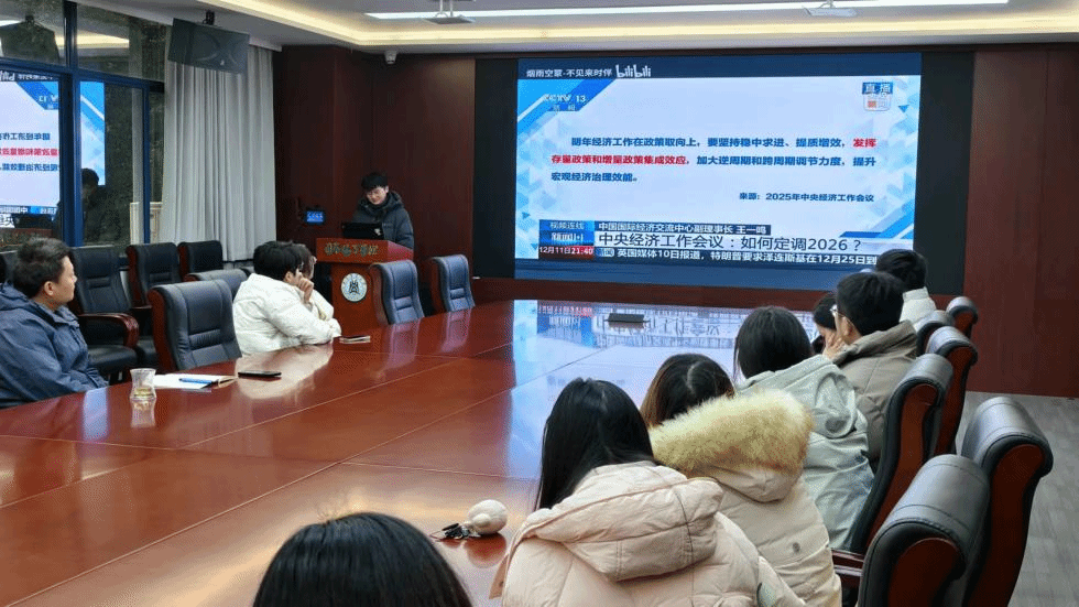 随后,支部党员集中观看了《新闻1+1:中央经济工作会议——如何定调2026》和《坚定信心,真抓实干,为实现“十五五”良好开局团结奋斗——中央经济工作会议精神引发热烈反响》两个专题学习视频。