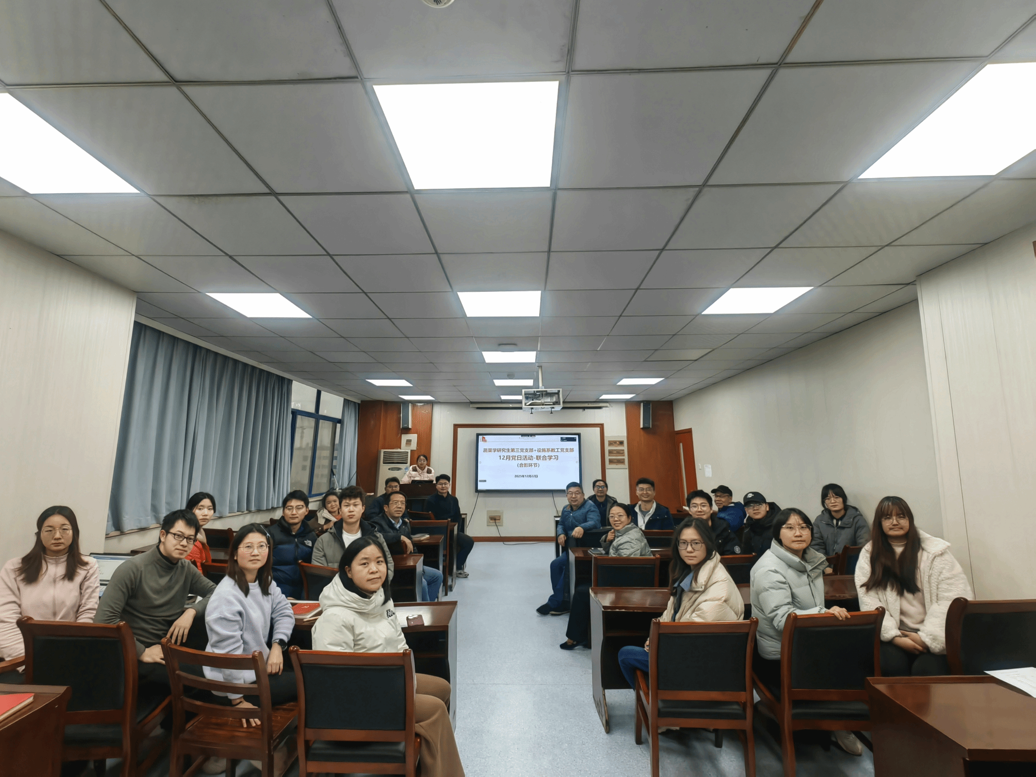 12月22日,设施与智慧园艺系教工党支部与蔬菜学研究生第三党支部在园林北楼615会议室开展支部联学。本次活动由蔬菜学研究生第三党支部书记储玉凡主持,支部红色导师黄远,孔秋生参加。活动围绕“深入学习贯彻2025年中央经济工作会议精神”和“学习中共中央政治局第二十三次集体学习重要讲话精神”进行了集中学习。