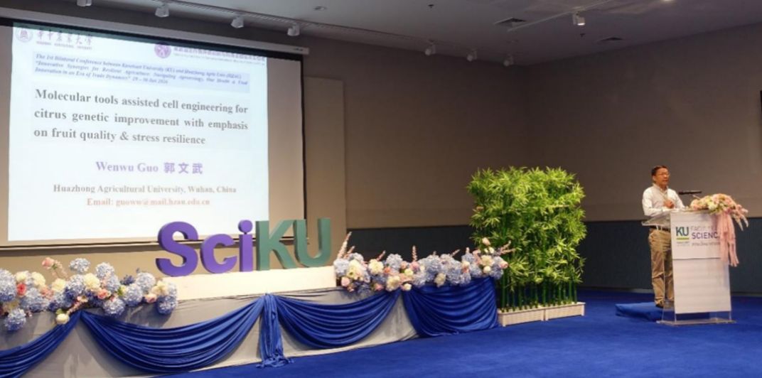 2026年1月29日至31日,bv伟德国际1946(HZAU)与泰国农业大学(KU)在曼谷召开首届双边学术研讨会(The 1st Bilateral Conference between Kasetsart University and Huazhong Agricultural University)。公司伟德bv1946官网郭文武、徐娟、伍小萌、余志4位教师连同王滑、王飞燕等正在泰国农业大学进行短期学习交流的园林师生共39人一同参会。会议主题为“创新型协同增效,共建韧性农业”(Innovative Synergies for Resilient Agriculture: Navigating Agroecology, One Health, and Food Innovation in an Era of Trade Dynamics)。
