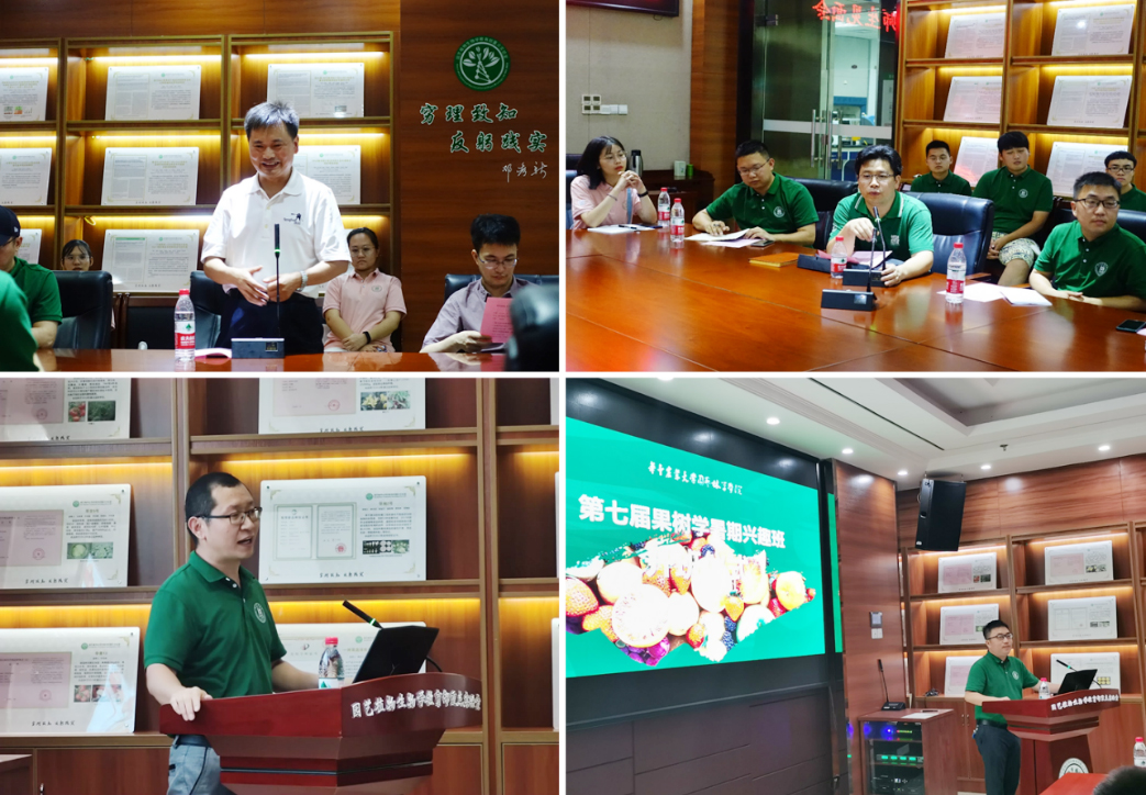 会议伊始,兴趣班班主任解凯东老师介绍了本届兴趣班的概况,从招生简章发布、学员信息采集、录取名单确定和现场报道,本届兴趣班共有35名学员,对大家的到来表示欢迎。解老师期寄来自19所大学的优秀学子相聚这里,能够碰撞出理想的火花。蔡江副书记致欢迎词,他提出本次夏令营举办目的是充分展示果树学科育人文化的“情怀”与“担当”,希望各位学员在有限的4天时间里全面深入地感受了解果树学科。接着,果树系主任刘军伟老师从学科历史、团队队伍、学科团队(单元)、科研平台及研究成果、人才培养、国际合作和社会服务等方面系统地给大家介绍了果树学科。果树系教师代表张飞教授给大家分享了他自己的成长和留学经历,到最后选择果树学科这片沃土的心路历程,他期待学员能够对果树学充满兴趣,果树系所有老师会热情解答学员疑问,共同助力果树学科进步和产业发展。在学员介绍环节,35名学员同学从自己与果树的“结缘”,纷纷表达了自己对果树学知识和果树产业学习的渴望,期待未来自己能够在果树研究和乡村振兴方面有所建树,早日回报家乡和社会。
