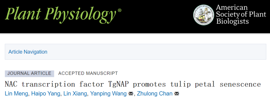 近日,伟德bv1946官网郁金香研究团队在Plant Physiology上发表了题为“TgNAP promotes petal senescence through regulating salicylic acid and removing reactive oxygen species inTulipa gesneriana”的研究论文,揭示了TgNAP通过双重调控SA的合成和H2O2的积累,从而促进郁金香花瓣的衰老。