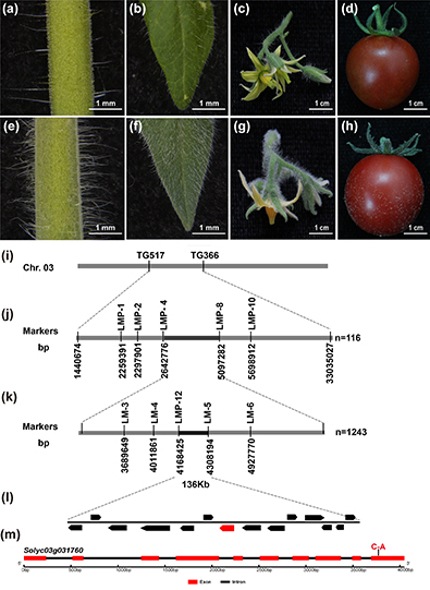 Chang J, Yu T, Yang Q, Li C, Xiong C, Gao S, Xie Q, Zheng F, Li H, Tian Z,Yang C*,Ye Z*. Hair, encoding a single C2H2 zinc-finger protein, regulates multicellular trichome formation in tomato. Plant J, 2018, 96(1):90-102
