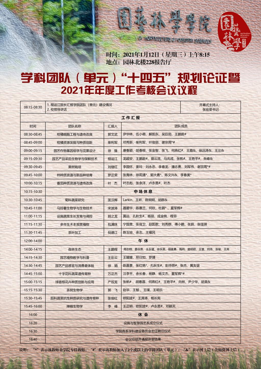 学科团队(单元)“十四五”规划论证暨2021年年度工作考核会议议程