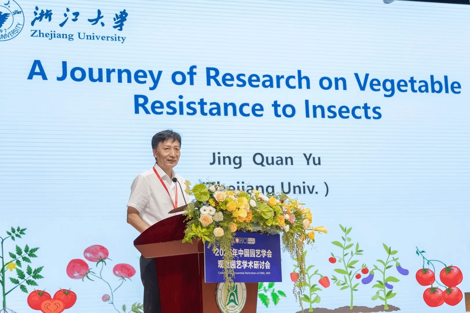 中国园艺学会副理事长、观赏园艺专业委员会主任潘会堂教授致辞(通讯员 殷铭轩 摄)
