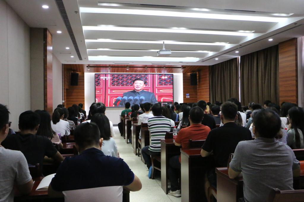 10月1日上午十点,庆祝中华人民共和国成立70周年大会在北京天安门广场隆重举行。公司师生于园林南楼204观看实况直播,公司党委常委、副董事长杨少波、院党委书记张宏荣、经理程运江等公司全体领导、各支部党员、师生代表等出席。