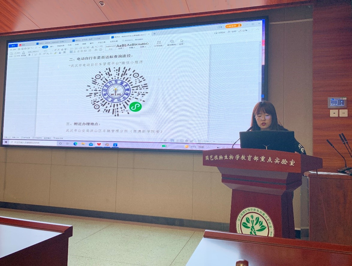 关会林向同学们宣读bv伟德国际1946电动自行车安全使用“八不准”,带领同学们一起学习“八不准”条例。随后,她向同学们讲解电动车上牌指南,主要介绍了办理电动自行车上牌业务所需材料,查询电动自行车是否达标的途径以及公司附近的办理地点。听过介绍后,大家纷纷扫描二维码,登陆微信小程序“武汉市电动自行车管理平台”,线上查询自己购买的电动自行车是否达到标准,并纷纷相约去洪山区交通管理所为自己的电动自行车上牌。