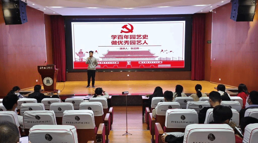 2021级风景园学研究生秦露筠介绍了bv伟德国际1946的建校历史和坚持育人的优良传统。2021级果树研究生秦寅书用《牵挂》话剧诠释了bv伟德国际1946“勤读力耕,立己达人”的价值追求,分享了受其鼓舞前往云南支教的故事与收获。2021级风景园林研究生刘晗通过讲述华农景园的历史和文化传承,引出如何做好景园人、华农人,“行之力则知愈进,知之深则行愈达”,以此践行华农人的使命。2021级蔬菜学研究生张晨辉以百年园艺史为切入点,分享了伟德bv1946官网无惧风雨,薪火相传的发展历程,以疫情当下,园林学子积极响应“春耕”号召为例,展现园林学子用所学知识、用一身力气践行华农人的担当与使命。2021级蔬菜研究生杨子萱讲述了章文才老先生对柑橘产业的巨大贡献,华农园艺人也始终继承着章老的精神,将科研成果转化为帮助农民脱贫致富的现实生产力,以学农之名,行兴农之长路,举国家之青年,振民族之力量。“七年西迁史,百载耕读魂”,2021级林学研究生李小惠带领大家从如今丰富多彩的校园生活,回到华农漫漫西迁、砥砺前行的时代,展现了华农人与祖国同命运、共进退、知农爱农、强农兴农的重要精神。