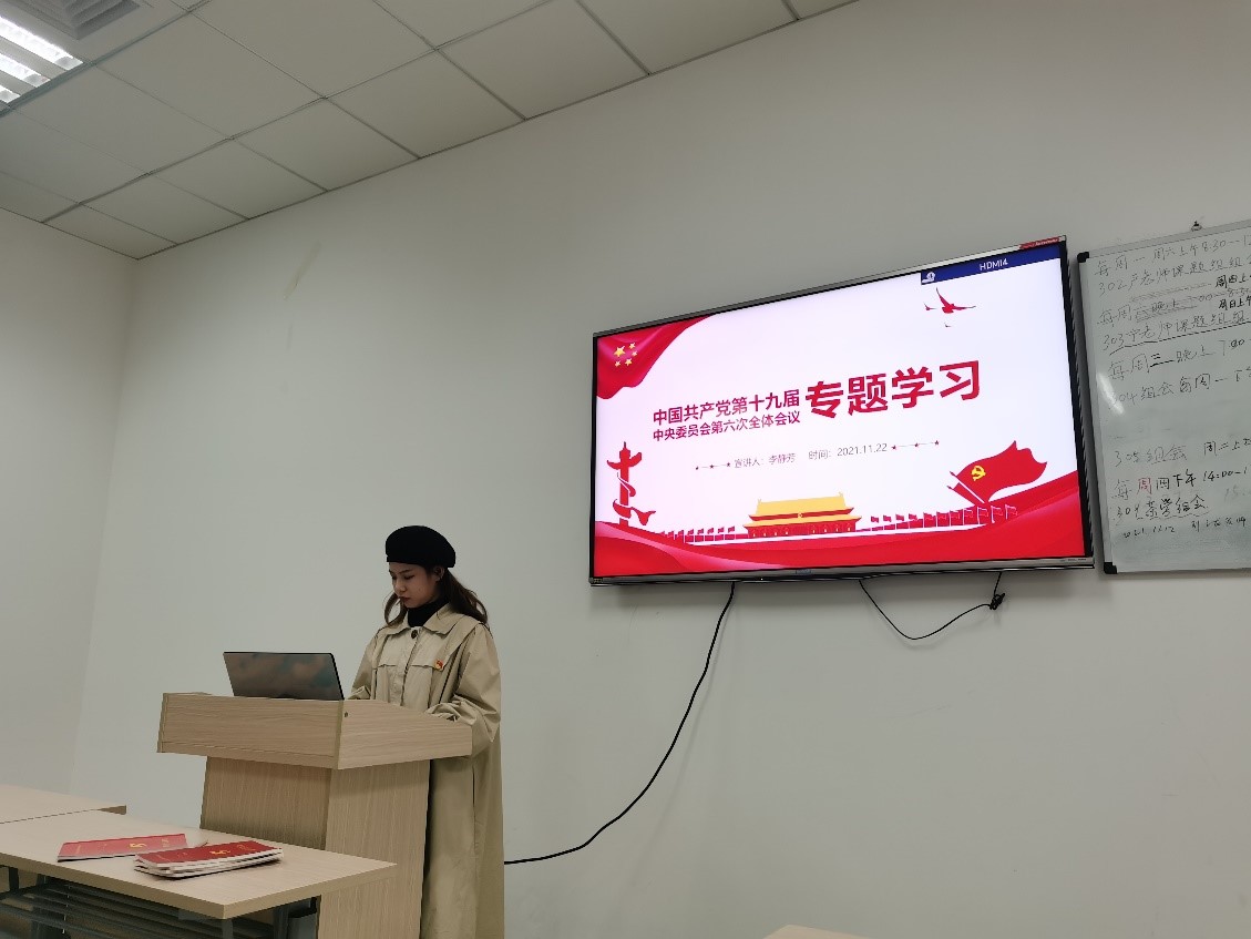 支部书记李静芳同志深入解读了十九届六中全会精神,带领支部成员学习了党的百年奋斗重大成就和历史经验,通过围绕“为何要总结党的百年奋斗重大成就和历史经验”“中国共产党百年奋斗带来了哪些辉煌成就”“中国共产党百年奋斗有哪些经验启示”三个问题使支部党员对十九届六中全会有了更深刻的理解和认识,同时同志们也认识到,《中共中央关于党的百年奋斗重大成就和历史经验的决议》对推动全党统一思想、统一意志、统一行动,在新时代更好地坚持和发展中国特色社会主义具有重大而深远的影响。