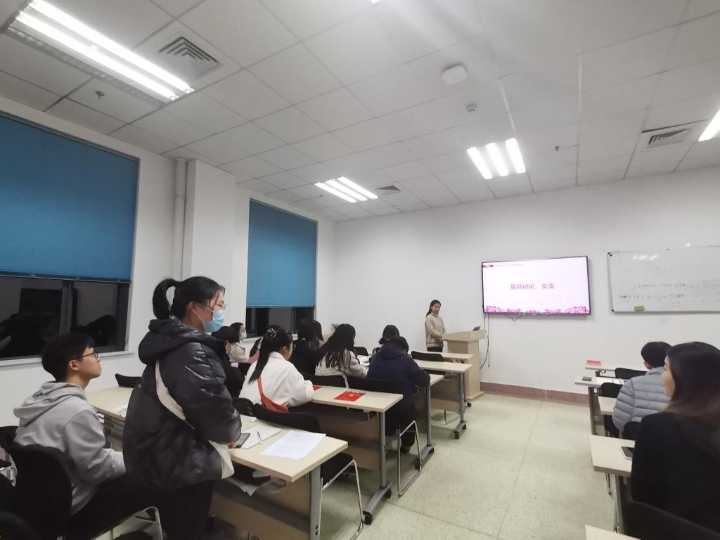 在党员讨论环节中,21级新生王紫婷问到:“在研究生的一些课程学习中,有时候会感到一些压力和困难,师兄师姐们是如何克服的?”对此,冯壹梅同志表示,要不断的学习,花足够的时间,就一定能得到你想要的成绩。