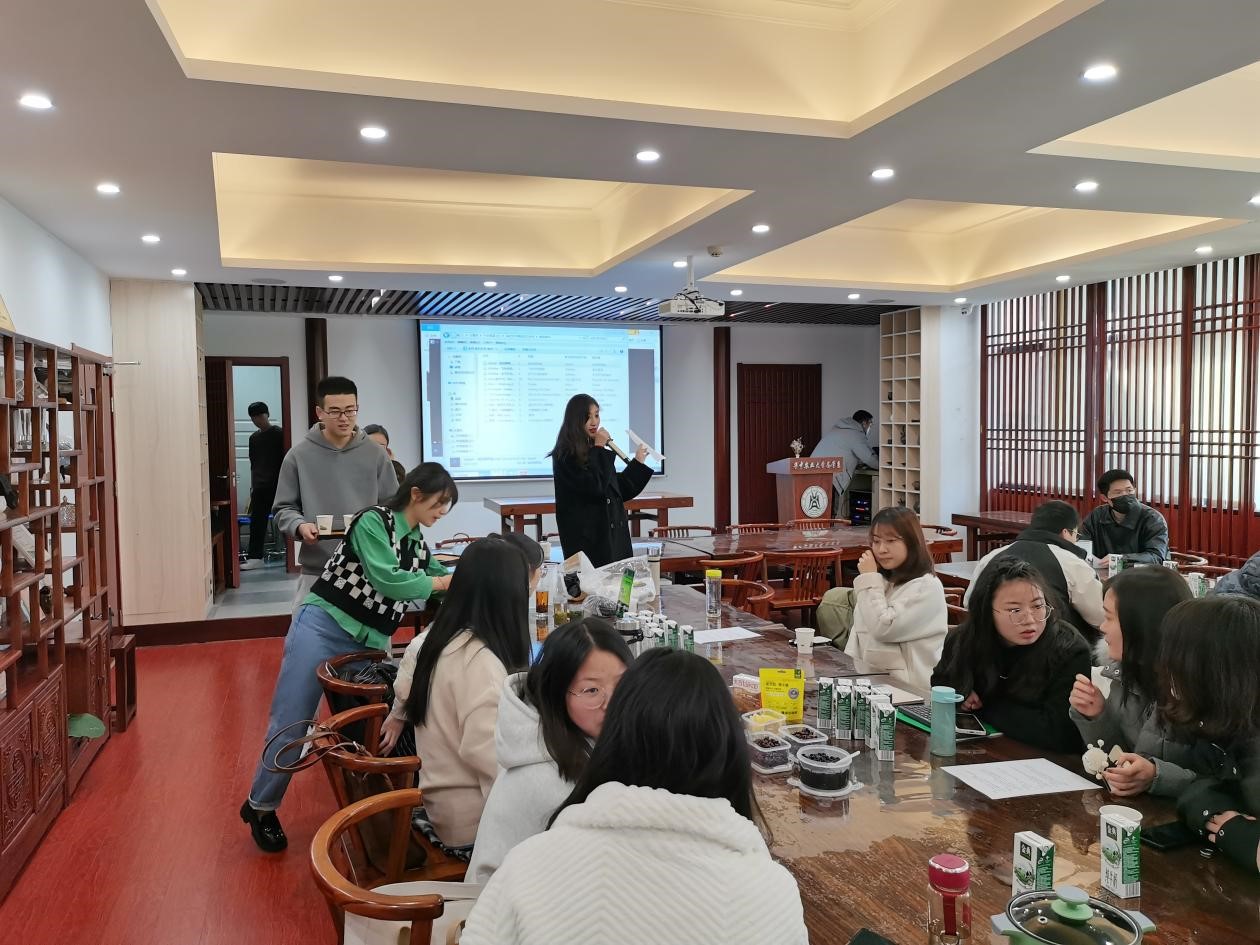 12月21日下午两点半,由公司茶学系主办的冬至茶会在耕读茶室举行。活动伊始,主持人杨淑雅同学向大家介绍了红茶、绿茶、青茶的基本知识及保健作用,倡导大家常饮茶科学饮茶,随后袁丽萍同学讲解了奶茶的调配方法。