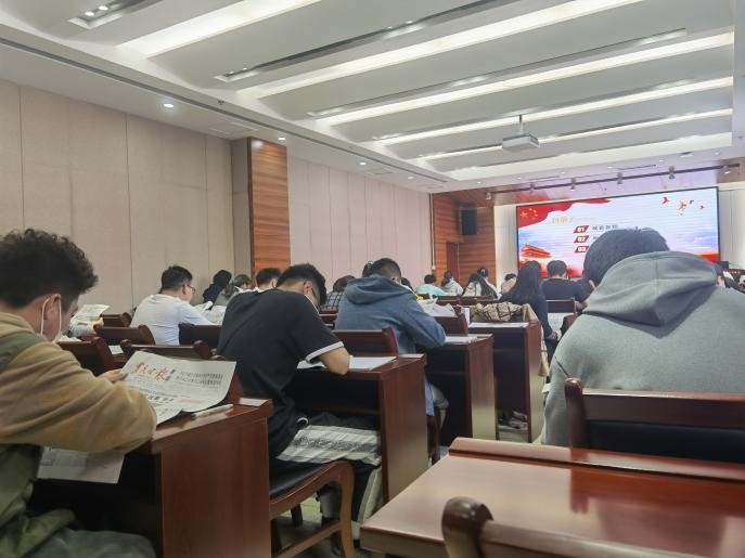 紧跟时事,提升政治素养。观看视频之后大家对最新一期的人民日报、湖北日报等多个报刊进行了自由阅读。借助报纸了解当前时事政治,关注身边大事,并写下学习感悟,提高思想政治素养。