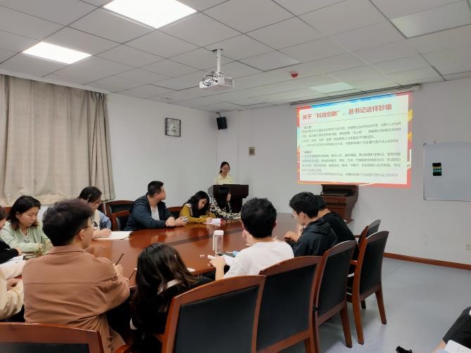 会议上,党支部书记潘辉首先带领大家学习了两院院士大会、中国科协第十次全国代表大会精神,通过“国之重器”、“国之利器”、“先手旗”和“命门”等总书记妙语深入阐释了科技创新对国家和人民的重要性。随后,指导老师傅小鹏同志结合花卉产业实际情况向大家进一步强调了科技的重要性。