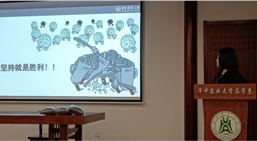 3月29日晚,2020级茶学班于园林北楼耕读茶室开展了“坚定信心,共抗疫情”的主题班会,会议由班长叶夏莉主持。