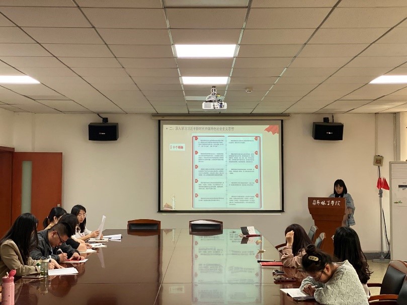接下来,与会成员深入学习了习近平新时代中国特色社会主义思想。由赵阳同志领学十九届六中全会决议中的十个明确和党的十九大报告中提出的十四个坚持。与会成员就本次集中学习内容进行了探讨。张佳佳同志谈到,作为党员干部,我们要起到先锋模范带头作用,在科研工作中,要做到行不乱章,不浮于表,脚踏实地做事,用真行动做出真成绩。