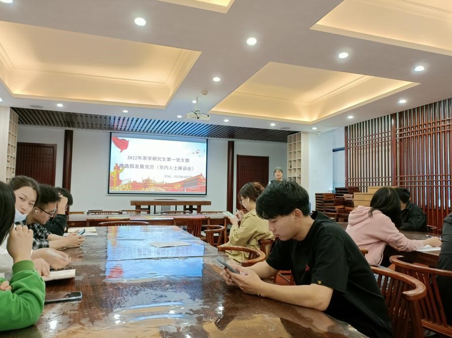2022年4月7日,茶学研究生第一党支部在园林北楼226召开党员发展讨论会议。