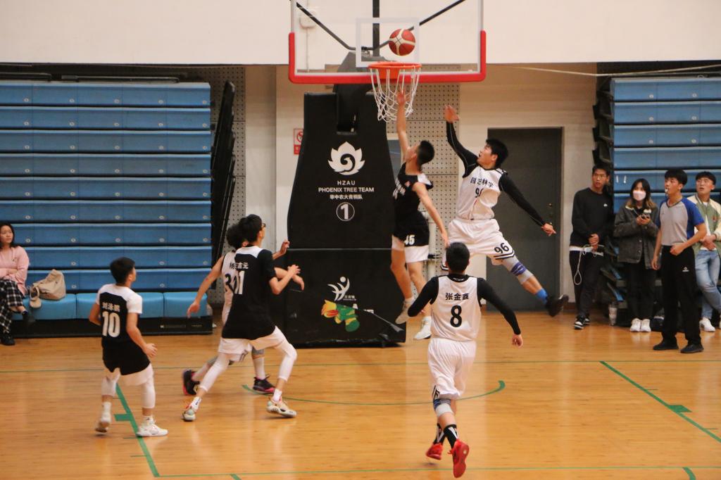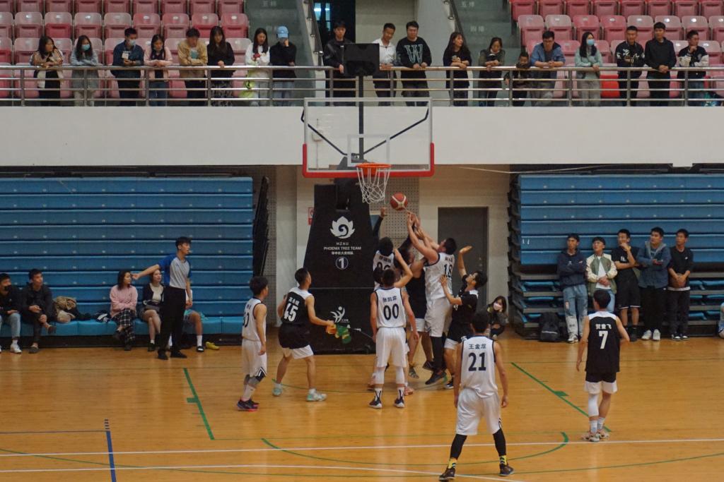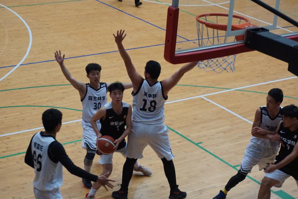 比赛一开始,双方队员就激烈争夺。园林院拔得头筹,率先抢进一球,极大鼓舞了队员士气。随后园林院30号队员杨涛再次抢下对方篮板,迅速反击,打出了一波6:0的小高潮。此时资环院一看节奏不对,叫了暂停,双方队员各自回到替补席,调整对策。暂停结束后,资环院队员技术犯规被裁判罚吹哨,而后园林院96号球员廖国旺带球突破防线再进一球。此时的比赛非常胶着,僵持两分钟的情况下双方都未能进球。接着,资环院抢下篮板投进一个两分球。比赛进行到15分钟的时候,园林院传球时被资环院抢断,资环院投进一个三分球,分差在逐渐缩小。第一节比赛结束时比分12:11,园林院领先。