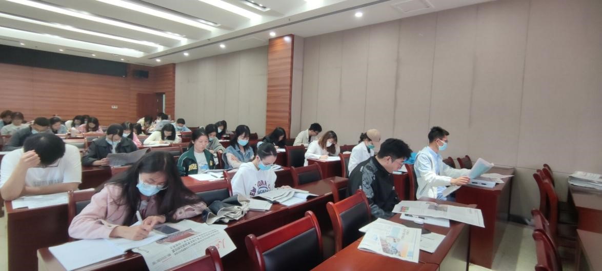 紧跟时事,提升政治素养。集体观看视频后,大家自由阅读了最新一期的人民日报、光明日报和湖北日报等,借助报纸关注身边大事,了解时事政治,同时写下学习感悟,提高自身思想政治素养。