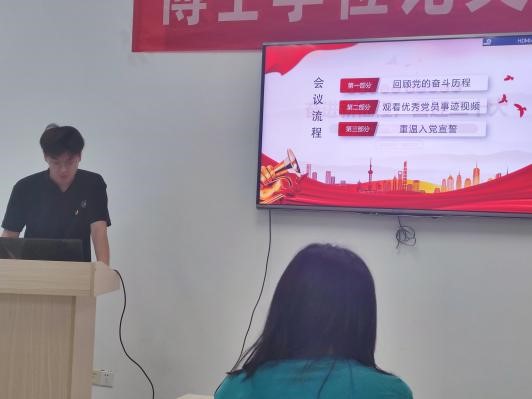 接着,全体成员观看了焦点访谈系列节目《党旗在一线飘扬》。基层治理事关人民群众生活的点点滴滴,习近平总书记指出:“基层党组织是贯彻党中央决策部署的最后一公里,要抓紧补齐基层党组织领导基层治理的各种短板。”视频里介绍了一些城市的基层党组织面对新情况新问题,加强和创新党建工作实现高效治理的先进事例,真正做到了党旗在一线飘扬,把基层党组织建设成为坚强的战斗堡垒。最后,支部党员同志在党支书带领下重温入党誓词,回忆入党初心,为继续奋进凝聚力量。