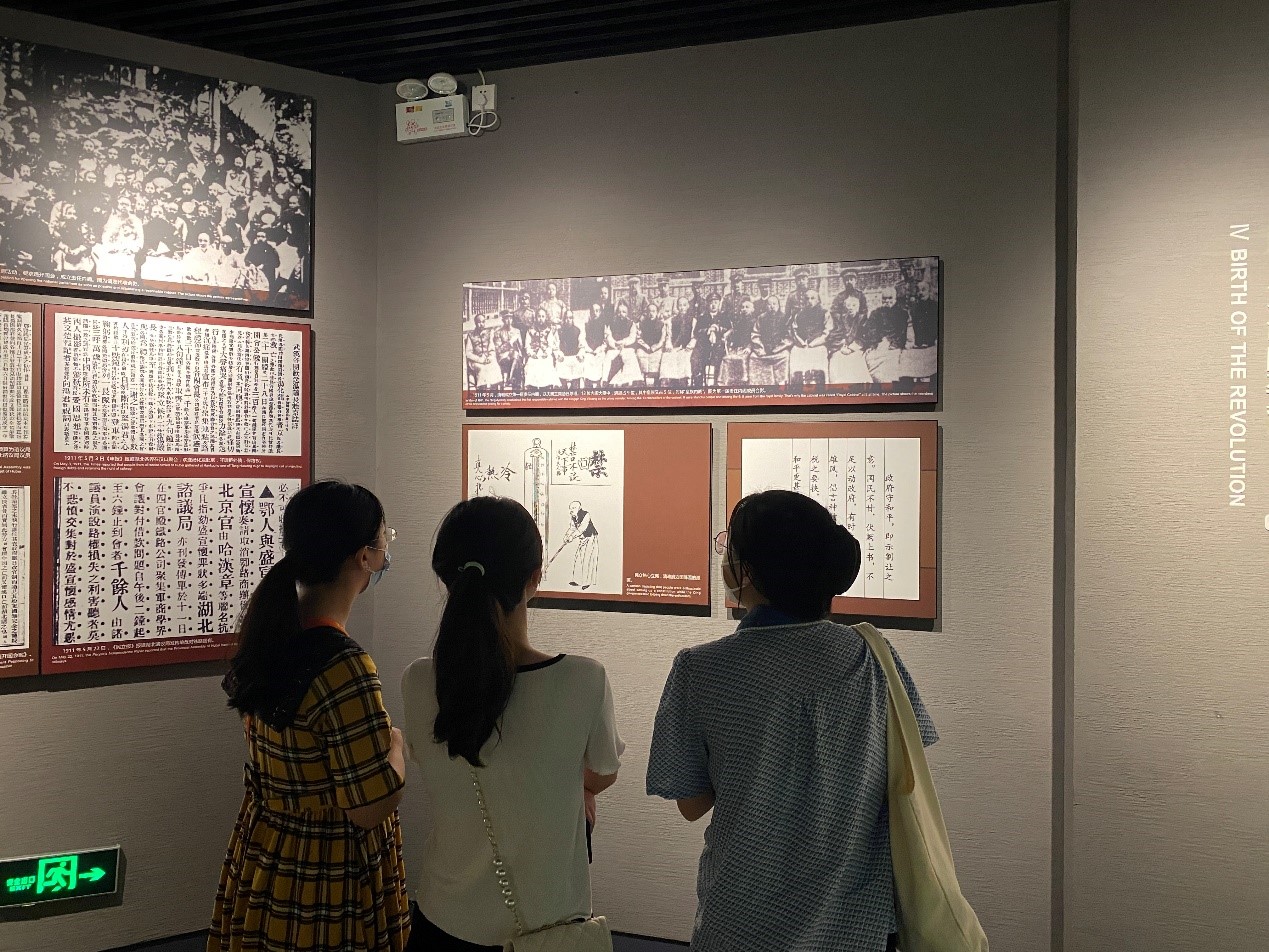 随后,小组成员参观了《为天下先——辛亥革命武昌起义史迹陈列》。展览分为四大部分,以文物、历史图片为主干,辅以艺术与科技展品,全景式地展示了武昌起义的背景、经过、结局与影响,讴歌了孙中山先生和辛亥革命先驱推翻帝制、创建共和的伟业。听着纪念馆内解说员的讲述,小组成员们不仅感受到了辛亥首义志士“为天下先”的革命精神,同时也感受到了“驱除鞑虏,恢复中华”的爱国壮志。