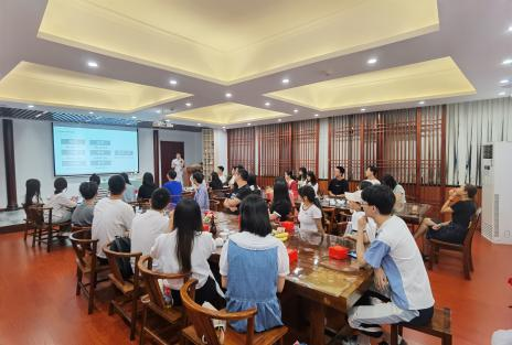 “茶之为饮,发乎神农氏,闻于鲁周公。”2020级茶学硕士研究生赵潇懿从茶叶充满神话色彩的起源——神农尝百草开始,带领着新生朋友们开启茶文化之旅。“阴差阳错下,原本红绿相伴的茶叶经过发酵烘干后变得乌黑发亮,于是有了‘乌茶’,也就是我们如今的红茶。”赵潇懿通过充满趣味的小故事,详细介绍了红茶的起源以及各种茶叶的区别。“茶艺讲究‘清’、‘淡’、‘静’、‘和’、‘真’。”最后,在宁静柔美的乐声中,赵潇懿向同学们讲述中华茶艺美学思想。