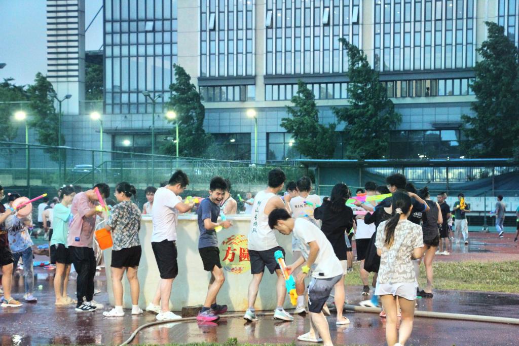 回到东运动场,“水枪大战”正蓄势待发。或持水枪,或端瓢盆,同学们使用着不同的“武器”互相“攻击”,追逐嬉戏,现场一片欢乐。公司党委书记高翅与同学们打成一片,他和毕业生们合影留念,并送上最真挚的祝福。公司辅导员们向毕业生们送去一句句“毕业快乐!”,他们和公司学子相聚在一起,共同庆祝着毕业的到来。